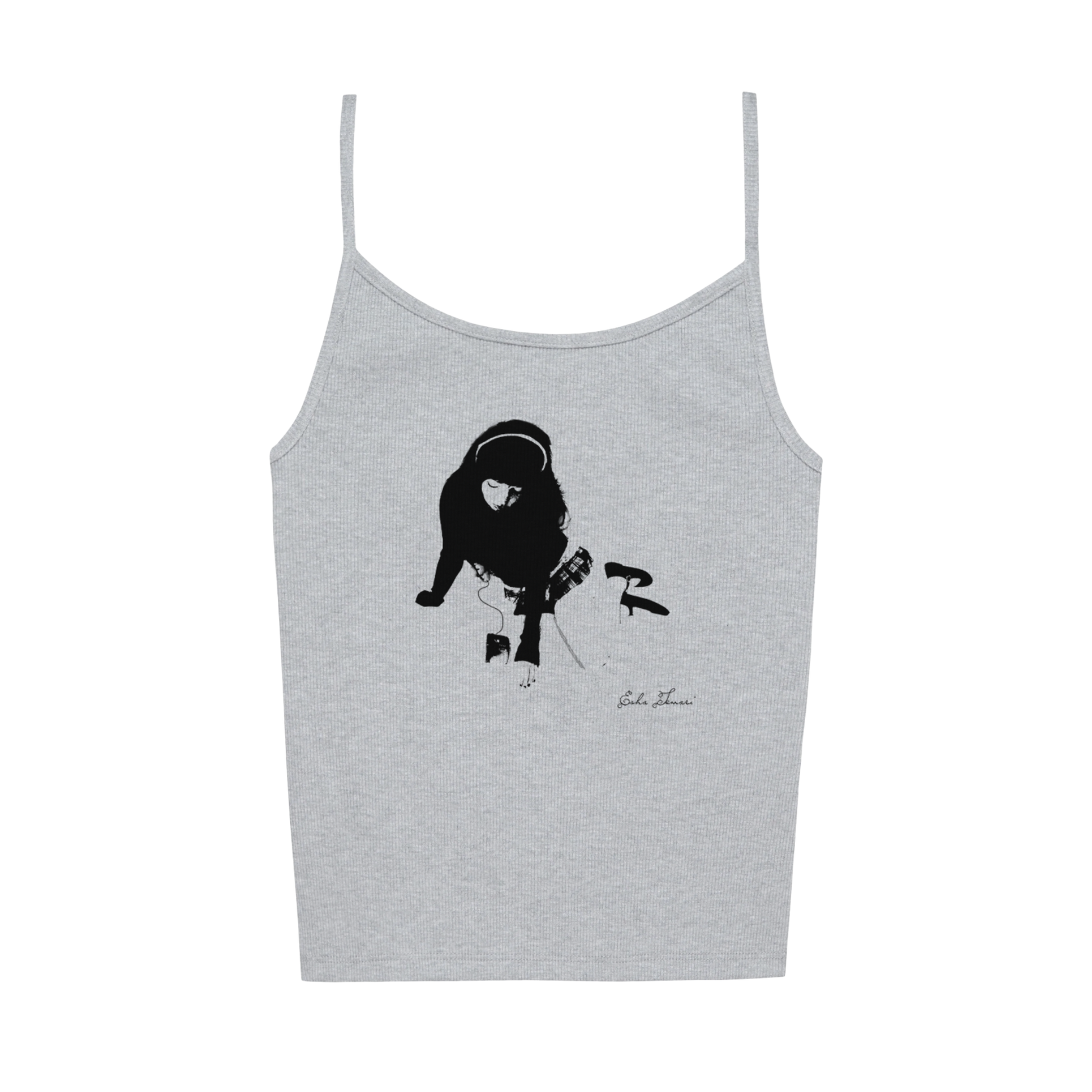 LA Apparel 100% cotton Made in Los Angeles, CA grey tank top. Esha design printed on front.
