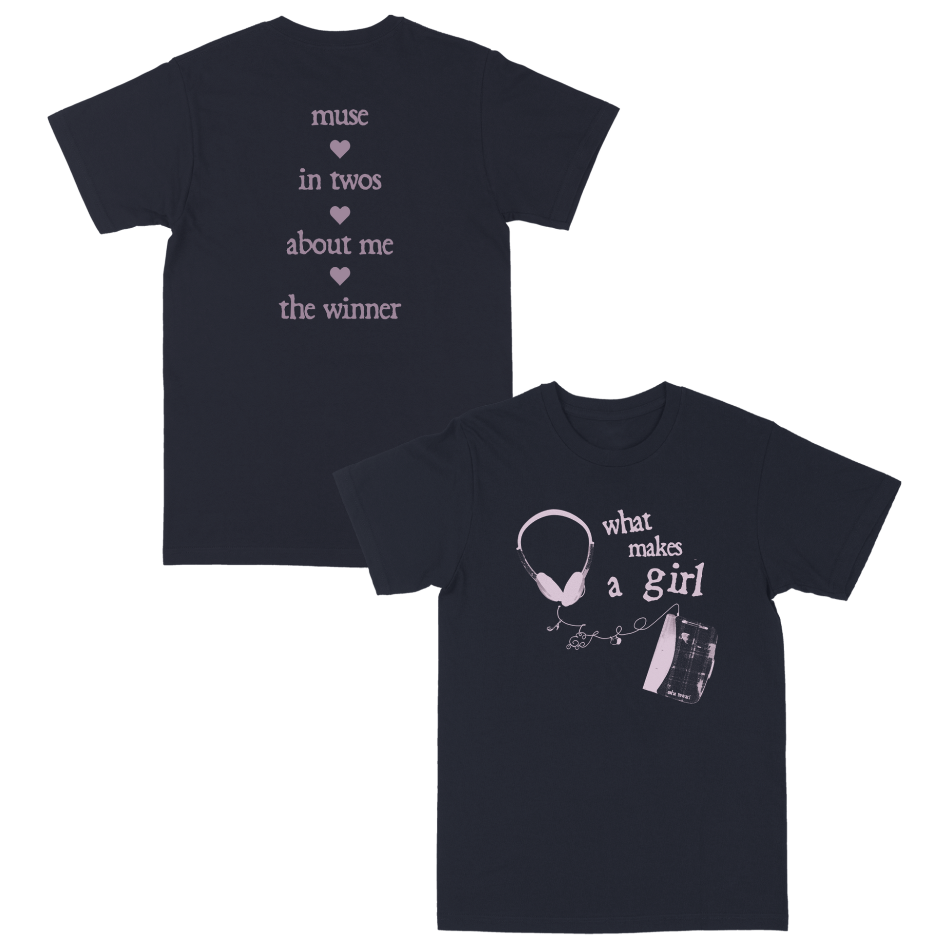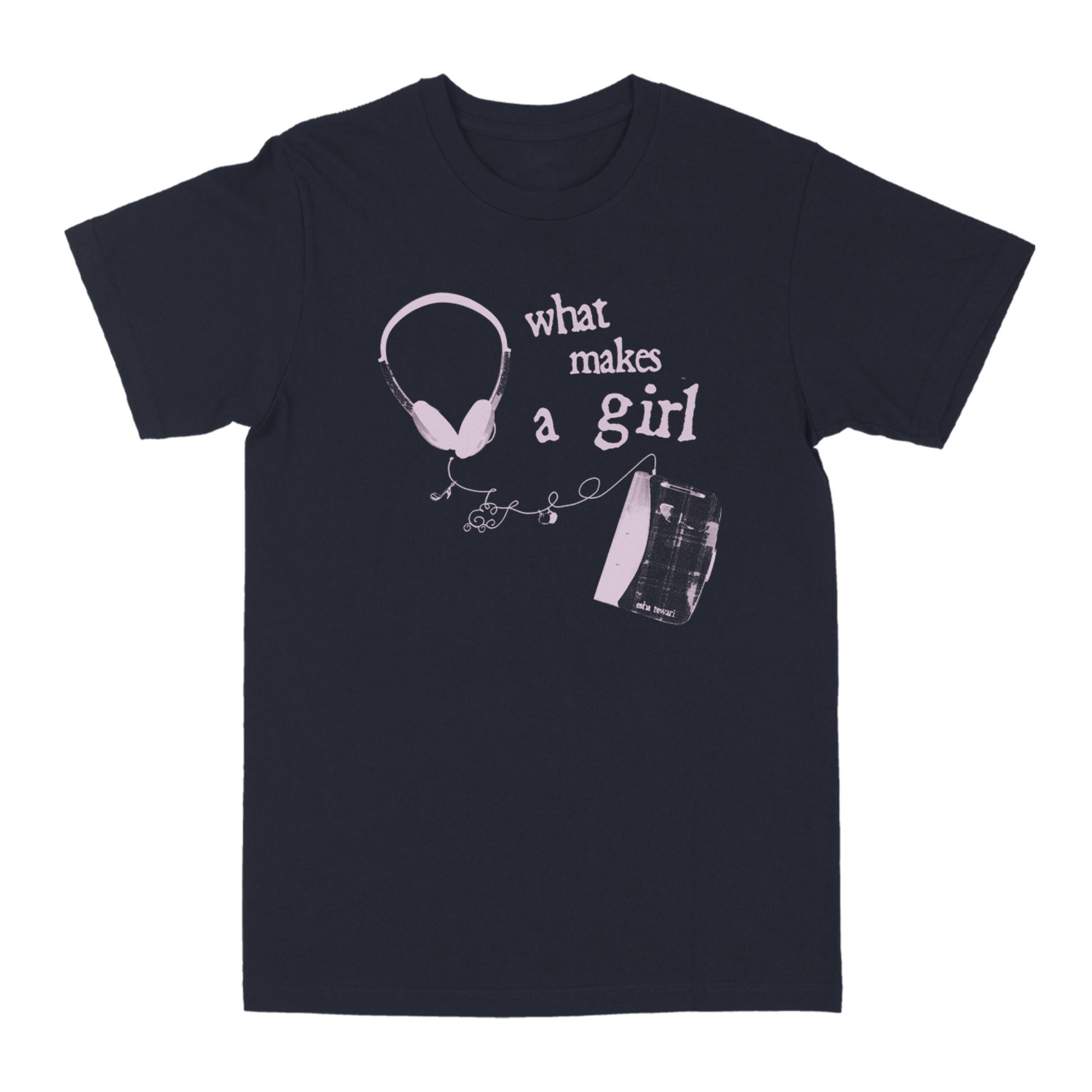 100% cotton tee with 'What Makes A Girl' design printed on front and back.